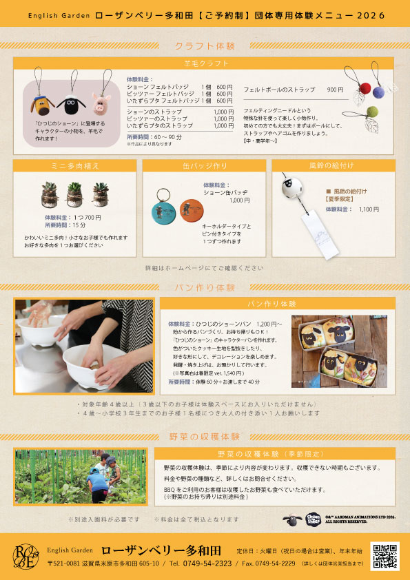 団体料金(15名様以上/前日までの事前予約のみ)2026.2.28(土)~