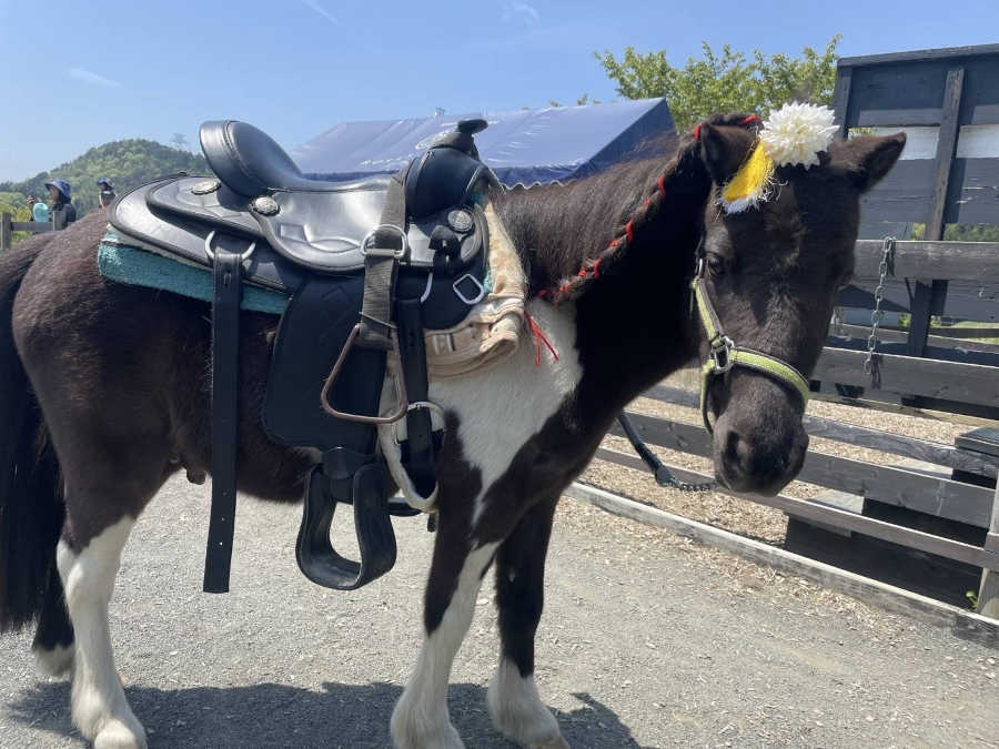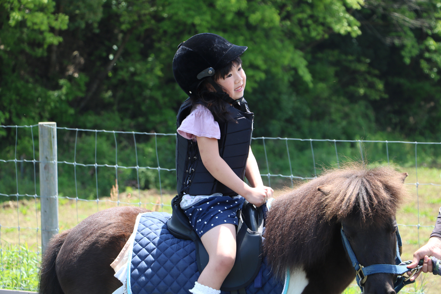 | 内容 | ポニーに騎乗して、スタッフが手綱を引いて馬場を一周していただきます。 騎乗したまま記念撮影をお楽しみいただき、騎乗場所に戻って終了です。 |