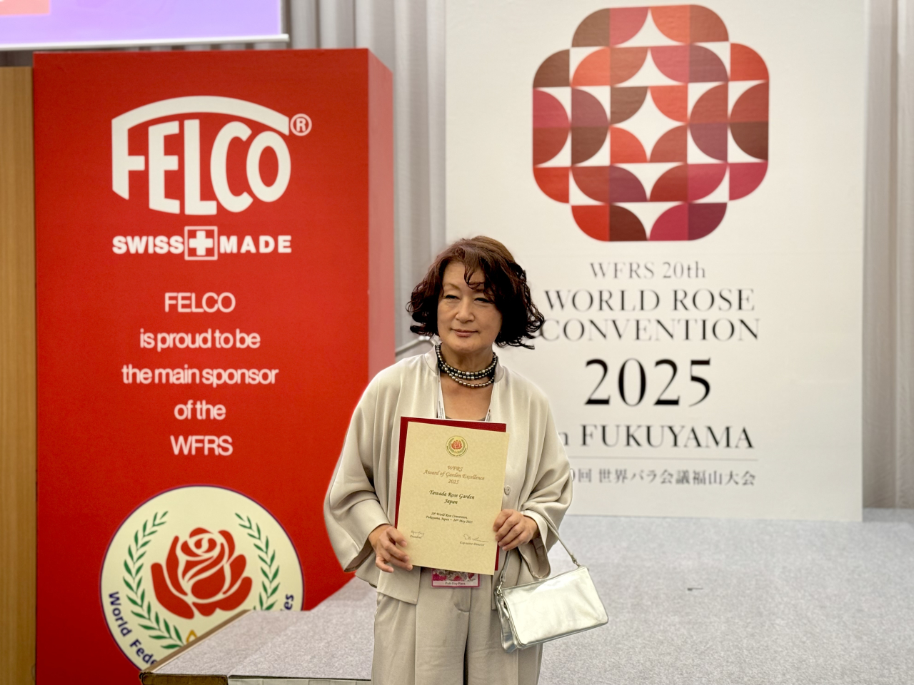 この度、広島県福山市で開催された『第20回世界バラ会議福山大会2025』(2025.5/18~5/24)におきまして、当English Garden ローザンベリー多和田の「バラと宿根草の庭」が≪優秀庭園賞≫を受賞いたしました!