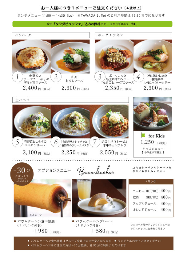 メインのお料理とヘルシーな手作りの多和田ビュッフェをお楽しみください。