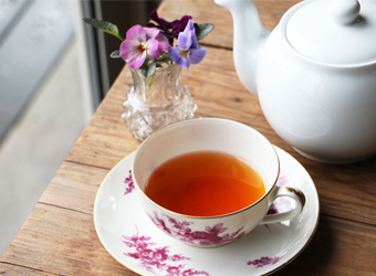 A cafe in a courtyard surrounded by greenery. Please enjoy a relaxing time with quality tea and the sweets of Rosa & Berry's sweets brand "Martin Pecheur".