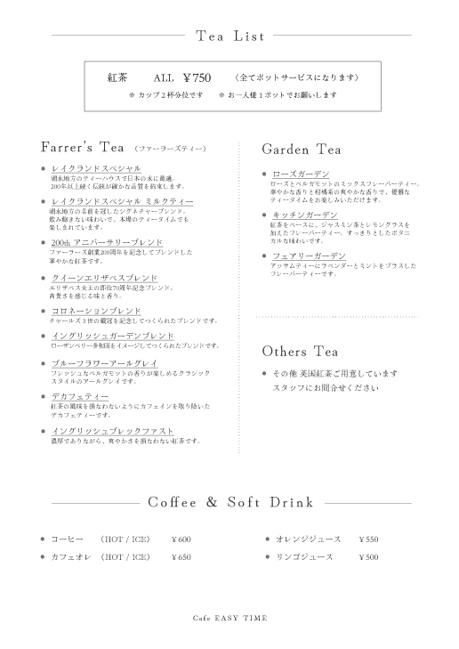 2026.2.28にリニューアルしたカフェ EASY TIMEで、愉しいひとときをお過ごしください