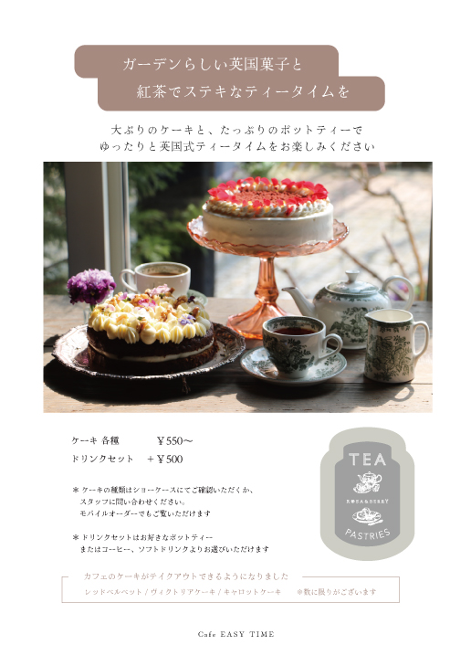ここでしか味わえないガーデンのティータイムをお楽しみください。