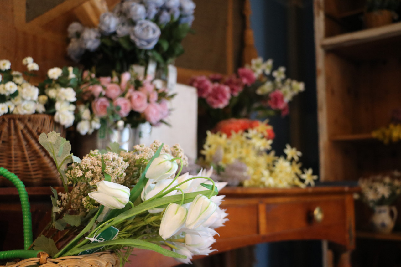 色とりどりのアーティフィシャルフラワーや、ブロカント商品もご購入可能です。