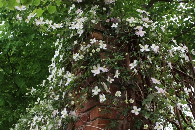 今年のクレマチスやバラの開花は少し遅れ気味です