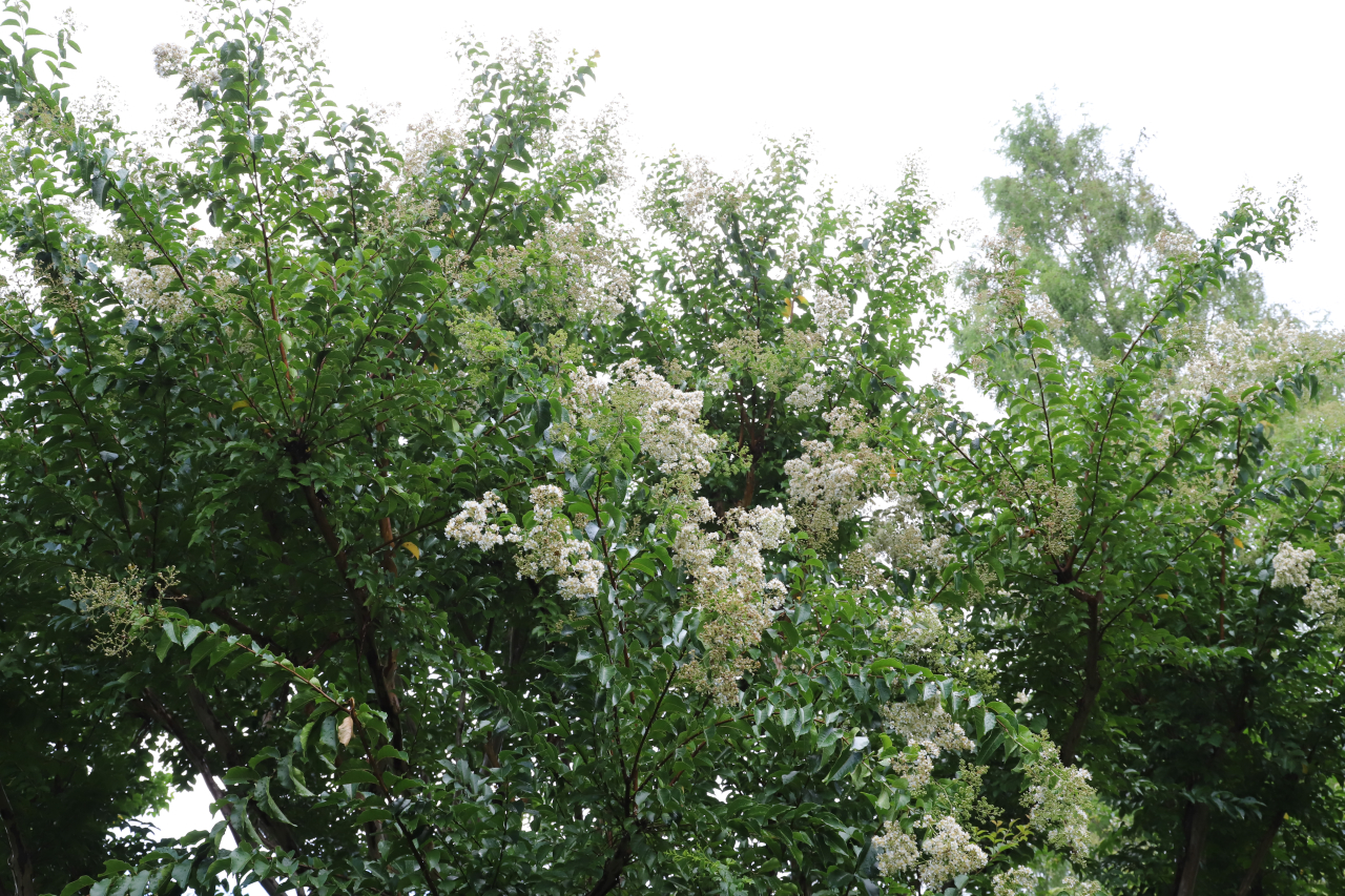 山野草の庭でシマサルスベリの白い花が満開になってます