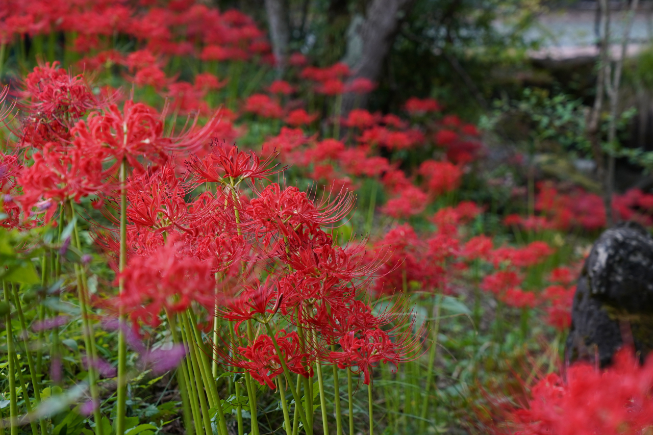 園内のあちこちで見られるヒガンバナ(曼殊沙華)が満開になっていて、今週末が見頃になるでしょう