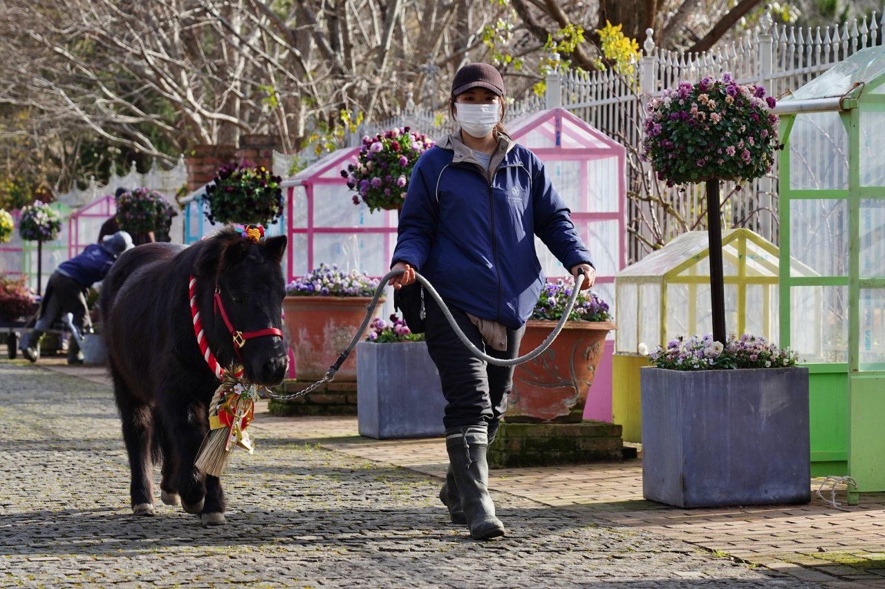 可愛いポニーがお客様をお迎えです