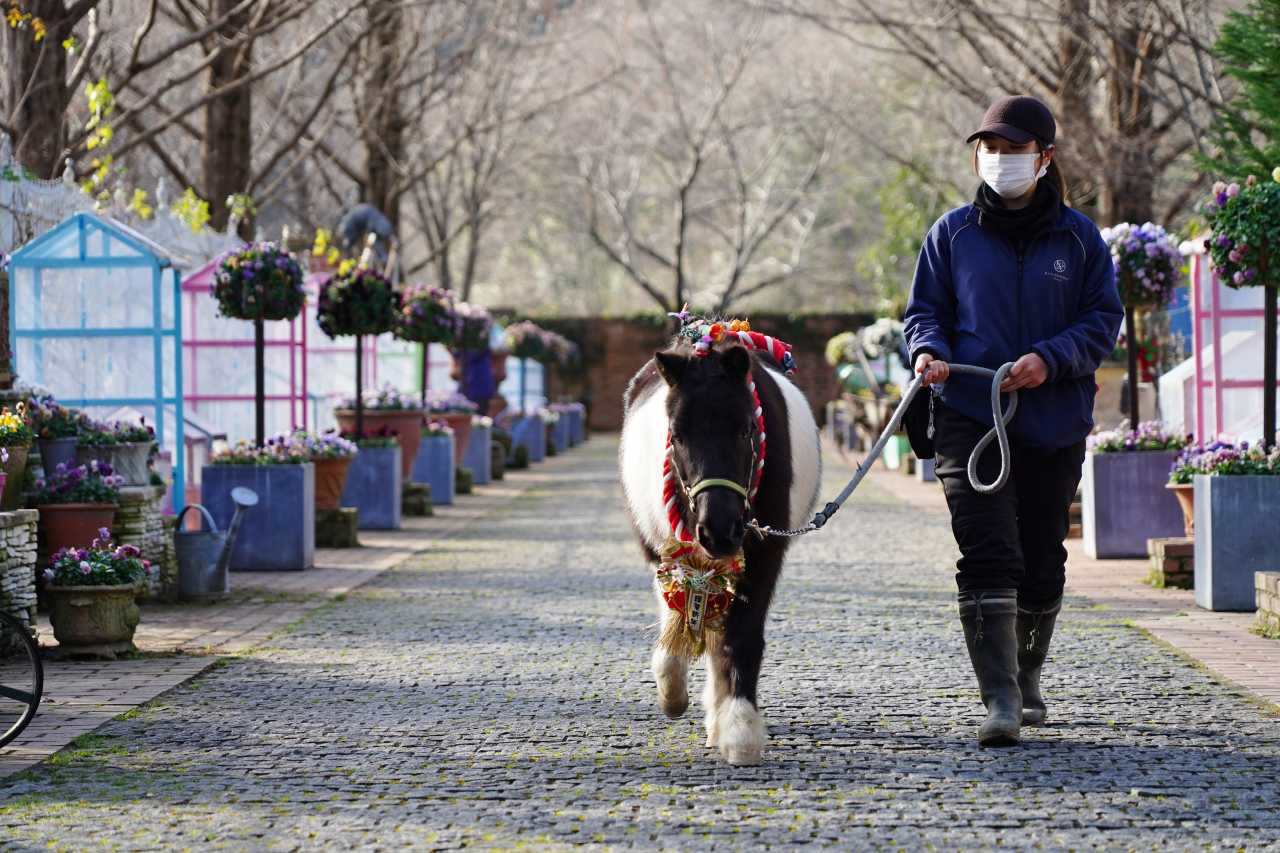 可愛いポニーの「こはる」と「こうた」がお客様をお迎えしました。