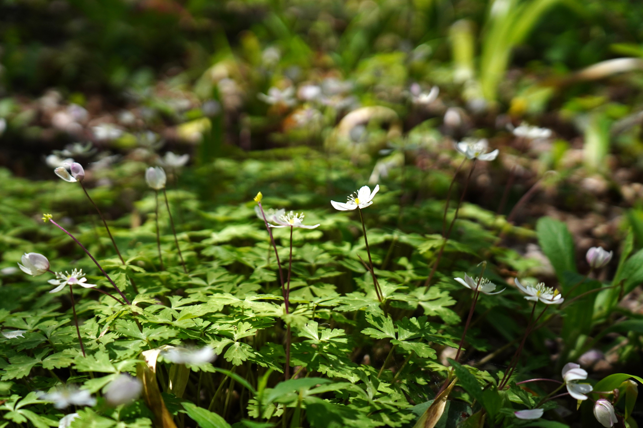 山野草の庭はクリスマスローズに代わって可愛い山野草達がひっそりと咲いています。
