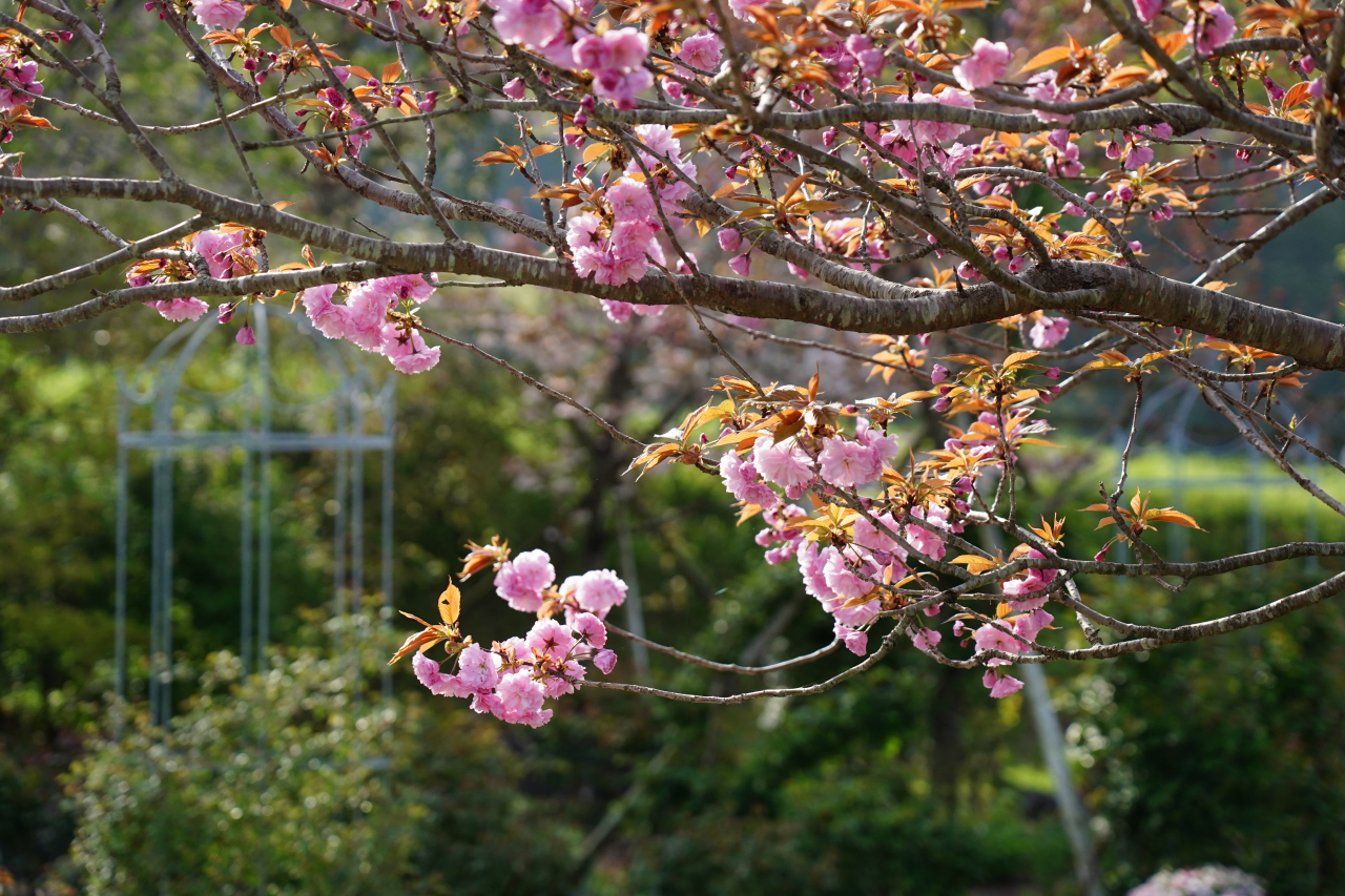 サクラはソメイヨシノに代わって八重咲(ボタンザクラ)が咲き始めました。