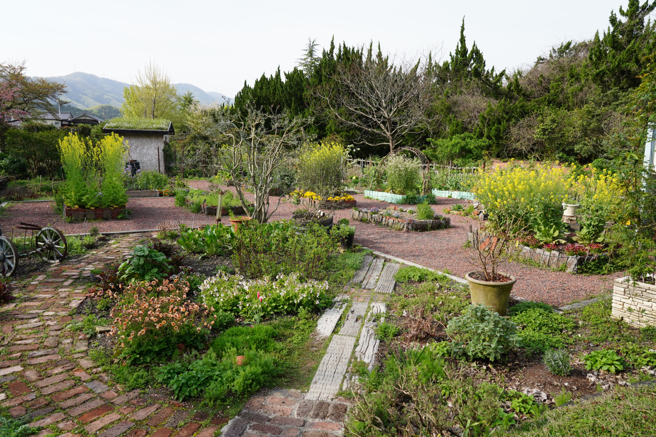 キッチンガーデンの様子、菜種の花が満開です。