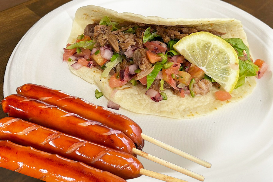 手軽に食べられるオリジナルタコスや、フランクフルトを外でお召し上がりください