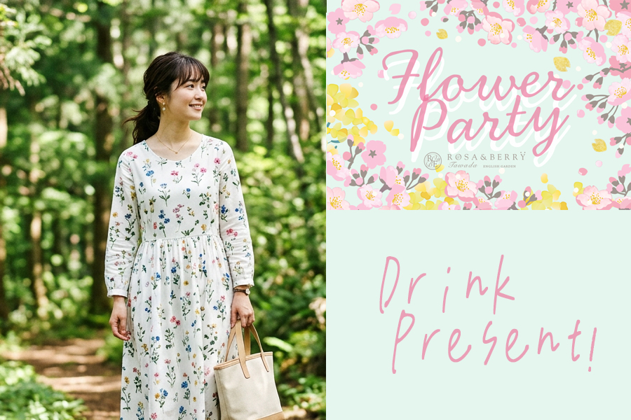 この2日間限定・花柄の服を着てご来園時に受付スタッフへお声がけいただいた方に限定ドリンク1杯引換券をプレゼント!