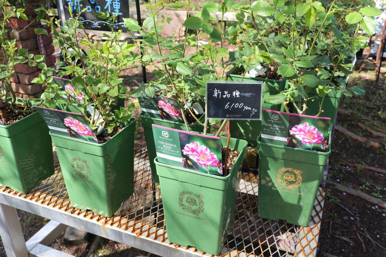 新品種のバラや、デビッドオースチン各種、殿堂入りのバラ、人気のレイニーブルーなど、種類豊富にラインナップ。